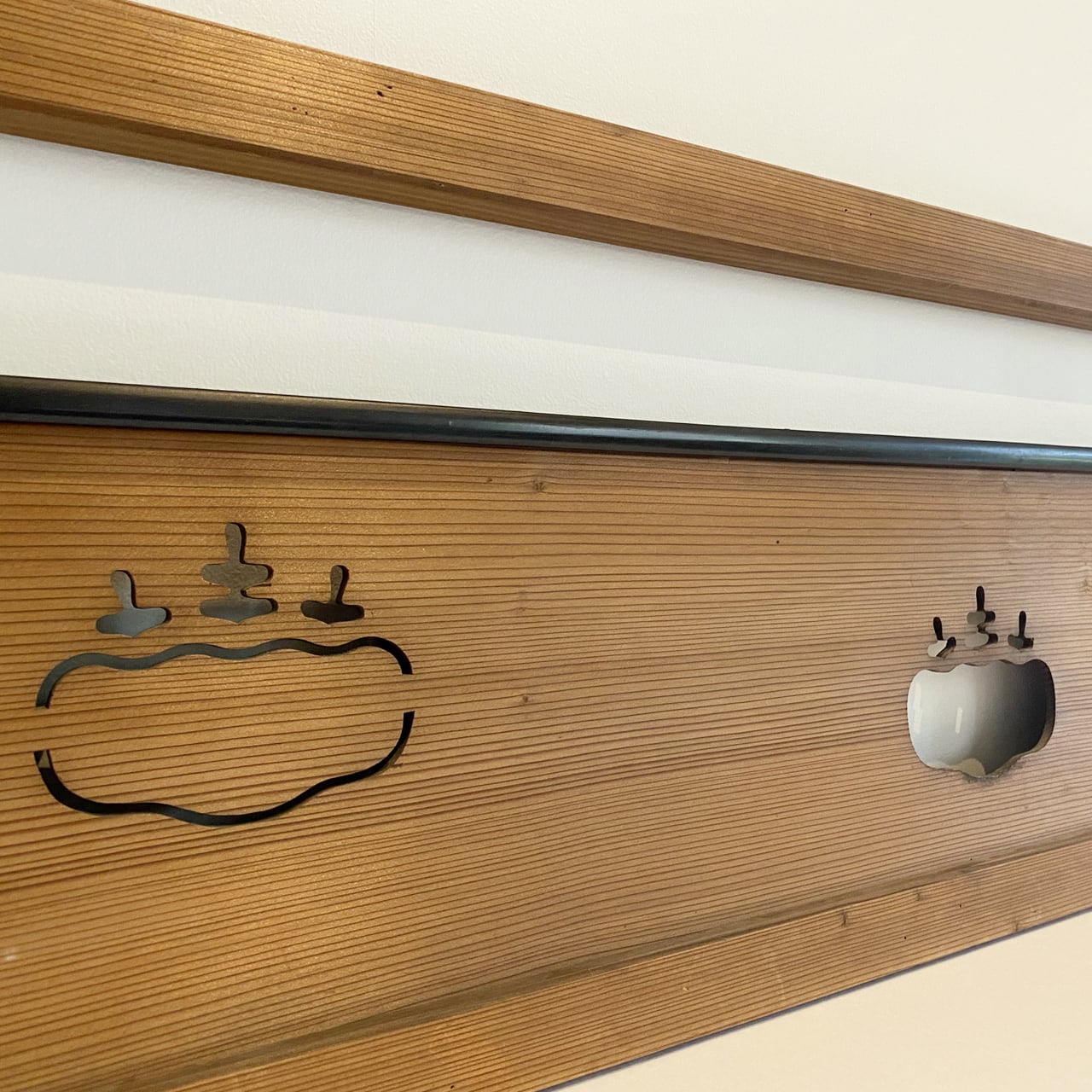 南京のような絵が彫られているこちらのらんま。通風、採光ともにしっかり取れます。松や山といった渋めの木彫りのものが多い中、珍しく可愛いらんまです!